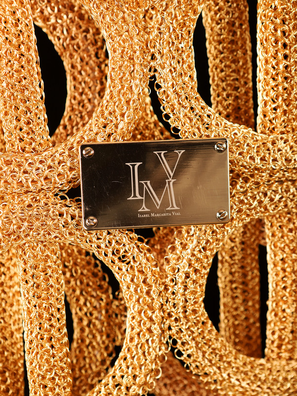 Capazo hecho a mano por mi querida amiga y artesana, Mónica. Confeccionado completo en cobre, un metal precioso que su color dorado y patrones geométricos, reflejan la arquitectura y el legado de antiguas civilizaciones chilenas.