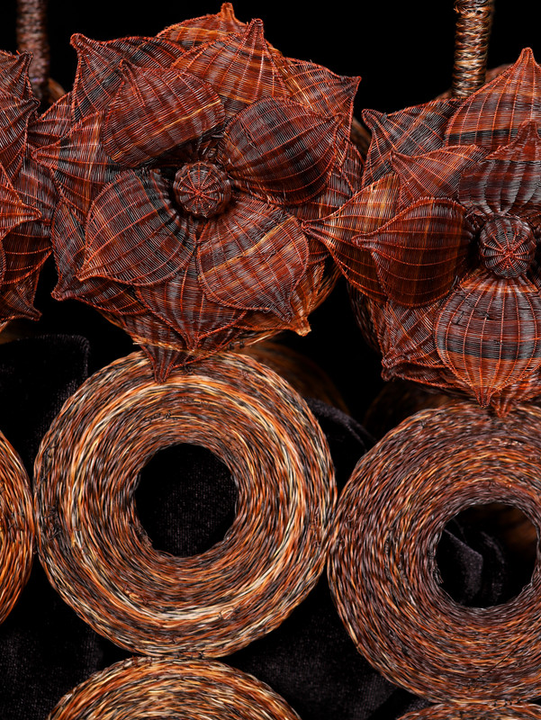 Este capaz es el fruto de la colaboración entre una amiga y maestra tejedora del crin, doña Flor. Su destreza en el arte de tejer se ha transmitido a lo largo de generaciones, comenzando su aprendizaje a la temprana edad de seis años bajo la guía de su abuela y madre. Esta pieza resulta no solo sublime, sino también impactante, evocando la vivacidad de la naturaleza gracias a la inclusión de delicadas camelias. No se trata simplemente de un objeto de lujo, sino de una auténtica manifestación de nuestro patrimonio que se presenta al mundo a través de la creatividad colectiva de mujeres. En este proyecto participan dos destacadas artesanas, doña Flor y la talentosa Chabela. Es esta última quien confecciona las maravillosas camelias, tan realistas que parecieran cobrar vida ante nuestros ojos.