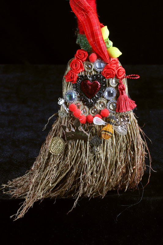 "Escoba de la Suerte" - Escoba, escoba...barre lo negativo y protege mi casa. Un día, mientras estaba diseñando mi primer capazo, entre sueños, ideas, ilusiones y magia descubrí esta escoba en mi taller. Fue así como le di un lugar en mi altar y se transformó en mi compañera, en mi amuleto de buenas vibraciones y de energía positiva. Mi Escobita querida, mi amuleto de la suerte. Le pedí que me trajera la inspiración, que me iluminara con la luz del sol que entraba por mi ventana y que llevara a conocer el brillo de las estrellas, hasta las más lejanas. Desde entonces, he ido colgándole toda clase de recuerdos, amuletos y bendiciones que hoy comparto contigo. Para prosperidad, para que limpie todo lo negativo y te acompañe, para que traiga amor, ilusión y mucha alegría. Ponla en un lugar especial, llénala de tus propios amuletos protectores e inspiradores que llenaron nuevamente de magia tu vida. Momentos memorables para atesorar, que releven tu propia historia, tal como hicieron nuestros ancestros para iluminar.